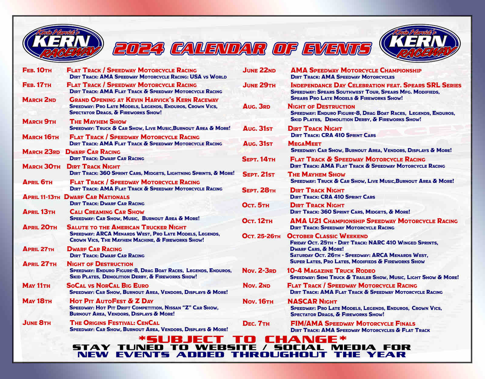 Source : www.arcaracing.comKevin Harvick’s Kern Raceway on X: “🏁 Exciting 2024 Schedule